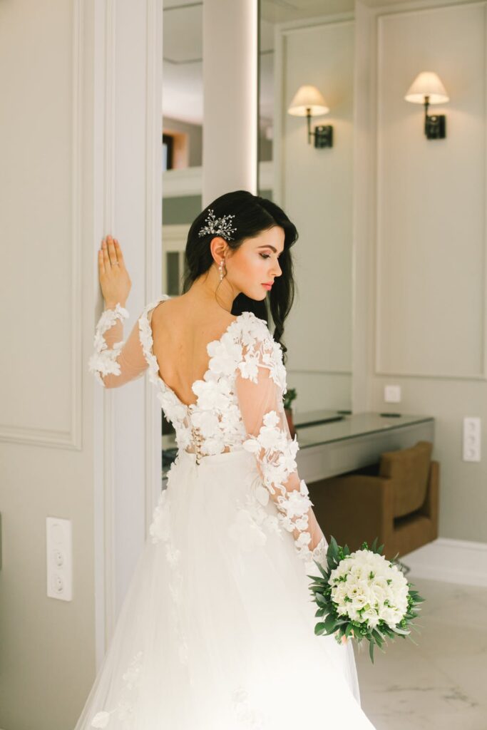 Das Hauptmerkmal, das ein Hochzeitskleid mit Spitze auszeichnet, ist die Fähigkeit, sich auf den attraktivsten Teil des Körpers zu konzentrieren. Sie können ein Kleid mit Spitzenausschnitt oder einem Spitzeneinsatz auf der Rückseite wählen. Dieses Material eignet sich gut für Seide, Satin und Chiffon, sodass die Möglichkeiten für das Styling des Kleides unbegrenzt sind.